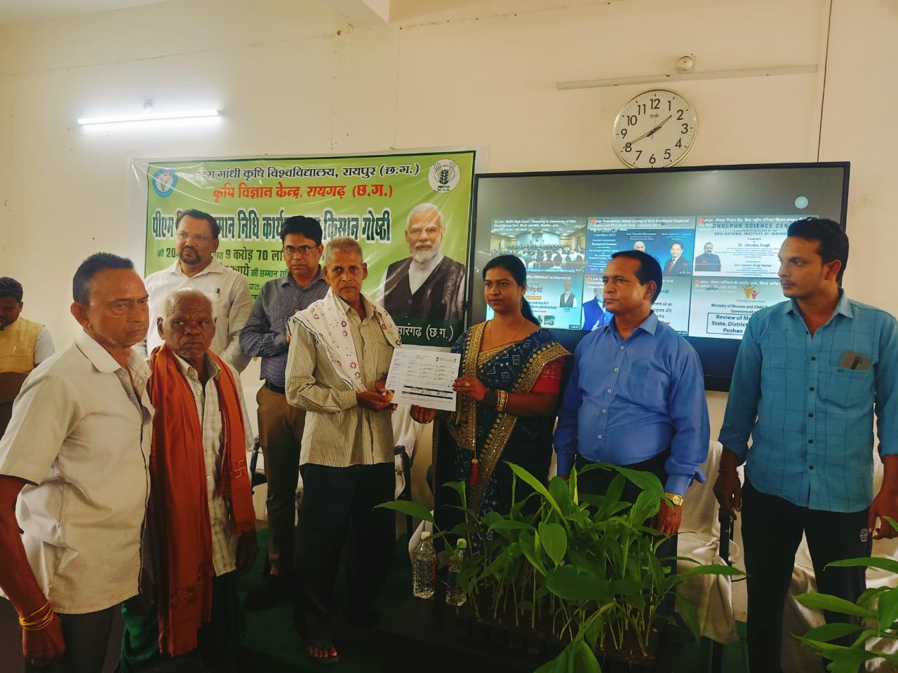 कृषि विज्ञान केंद्र, रायगढ़ में लाईव कार्यक्रम का आयोजन किया गया, जिसमें रायगढ़ एवं सारंगढ़-बिलाईगढ़ जिलों के सैकड़ों किसान उपस्थित रहे। इस अवसर पर रायगढ़ जिले के 87,576 किसानों को कुल 19 करोड़ 29 लाख की राशि इस योजना के अंतर्गत हस्तांतरित की गई।