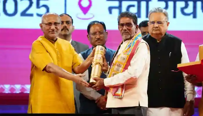 उप राष्ट्रपति श्री सीपी राधाकृष्णन ने आज नवा रायपुर में छत्तीसगढ़ राज्योत्सव के राज्य अलंकरण समारोह में छत्तीसगढ़ के 34 अलंकरण से विभिन्न क्षेत्रों से उत्कृष्ट योगदान देने वाले 37 विभूतियों एवं 4 संस्थाओं को सम्मानित किया। इस अवसर पर राज्यपाल श्री रमेन डेका ने कार्यक्रम की अध्यक्षता की। मुख्यमंत्री श्री विष्णु देव साय अलंकरण समारोह के अति विशिष्ट अतिथि तथा विशिष्टि अतिथि के रूप में विधानसभा अध्यक्ष डॉ. रमन सिंह, उप मुख्यमंत्री श्री विजय शर्मा, मंत्रीगण, सांसद एवं विधायकगण उपस्थित थे।