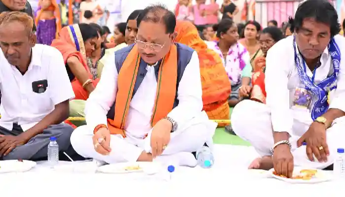 रायपुर, 14 अप्रैल 2026. मुख्यमंत्री श्री विष्णु देव साय आज राजधानी रायपुर के शंकरनगर स्थित दुर्गा मैदान में डॉ. भीमराव आंबेडकर की 135वीं जयंती के अवसर पर आयोजित समरसता भोज कार्यक्रम में शामिल हुए। इस दौरान मुख्यमंत्री श्री साय ने जनप्रतिनिधियों और आमजन के साथ बैठकर भोजन किया तथा स्वयं लोगों को भोजन परोसकर सामाजिक समरसता का संदेश दिया।