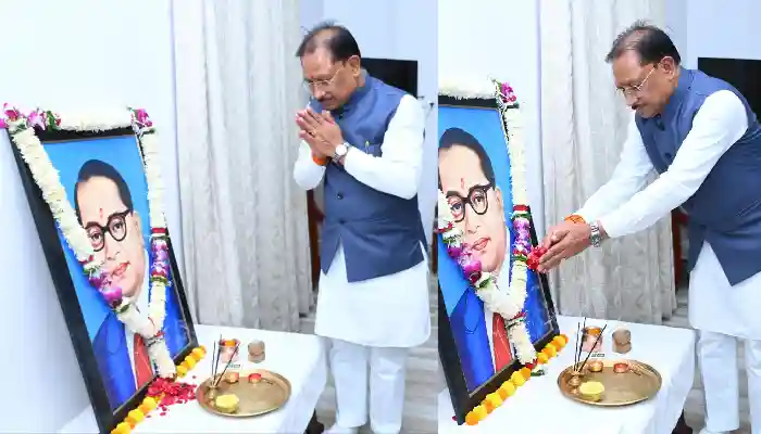 रायपुर 14 अप्रैल 2026. मुख्यमंत्री श्री विष्णु देव साय ने आज राजधानी रायपुर स्थित मुख्यमंत्री निवास में भारतरत्न डॉ. भीमराव अम्बेडकर की जयंती के अवसर पर उनके छायाचित्र पर पुष्प अर्पित कर नमन किया। इस अवसर पर शिक्षा मंत्री श्री गजेंद्र यादव, विधायक श्री रोहित साहू सहित अन्य जनप्रतिनिधि उपस्थित थे।
