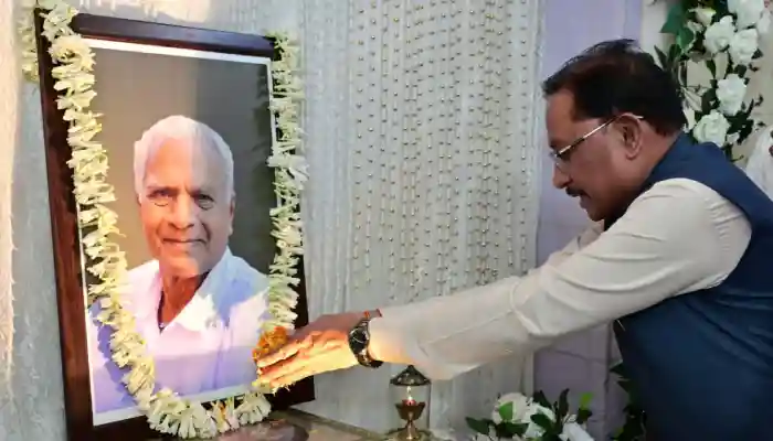 रायपुर, 19 मार्च 2026. मुख्यमंत्री श्री विष्णु देव साय ने आज जशपुरनगर के वरिष्ठ सामाजिक कार्यकर्ता एवं लोकतंत्र सेनानी स्वर्गीय श्री महावीर प्रसाद जैन के निवास पहुंचकर उनके छायाचित्र पर पुष्प अर्पित कर श्रद्धांजलि दी।