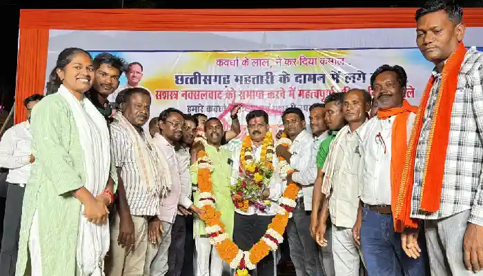सशस्त्र नक्सलवाद से मुक्त छत्तीसगढ़ बनने के बाद उप मुख्यमंत्री एवं गृह मंत्री श्री विजय शर्मा रविवार को अपने विधानसभा क्षेत्र कवर्धा पहली बार पहुंचे। जहां पर स्थानीय महामाया चौक में कवर्धा के लोगों ने उनके लिए भव्य ऐतिहासिक नागरिक अभिनंदन समारोह आयोजित किया। जिसमें हजारों की संख्या में लोग बाजा-गाजा, ढोल-नगाड़ों के साथ शामिल हुए, पूरे शहर में जश्न का वातावरण नजर आया। सभी को गर्व था कि कभी नक्सल प्रभावित कबीरधाम जिले के साथ अब पूरे छत्तीसगढ़ से भय और आतंक को दूर करने में उनके अपने माटी पुत्र का बड़ा योगदान रहा है।