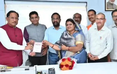 रायपुर,18 फरवरी 2026. मुख्यमंत्री श्री विष्णु देव साय से आज महानदी भवन में इंडियन मेडिकल एसोसिएशन छत्तीसगढ़ स्टेट के प्रतिनिधिमंडल ने सौजन्य मुलाकात की।इस दौरान डॉक्टरों ने 7 व 8 मार्च 2026 राजधानी रायपुर में स्थित श्री बालाजी इंस्टीट्यूट ऑफ मेडिकल साइंसेज में “आईएमए सीजीकॉन 2026” 21 वां स्टेट कॉन्फ्रेंस का न्यौता दिया। मुख्यमंत्री श्री साय ने कार्यक्रम के सफल आयोजन के लिए अग्रिम बधाई एवं शुभकामनाएं दी।