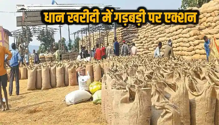 गरियाबंद जिले में धान खरीदी में लापरवाही एवं अनियमितता के लिए लोहरसी के कर्मचारी श्री संतोष कुमार साहू, मैनपुर के श्री गोपी राम मरकाम को निलंबित तथा शोभा के श्री भीखम मरकाम को कार्य से पृथक किया गया है। महासमुंद जिले में धान खरीदी में अनियमितता के मामले में पिरदा के उपार्जन केन्द्र प्रभारी श्री रोहित पटेल और सिंगबहाल के उपार्जन केन्द्र प्रभारी श्री बुध्दिवंत प्रधान के विरूद्ध एफआईआर दर्ज कराया गया है। साथ ही धान खरीदी में अव्यवस्था के कारण तोषगांव के उपार्जन केन्द्र प्रभारी श्री नकुल साहू को निलंबित किया गया है।