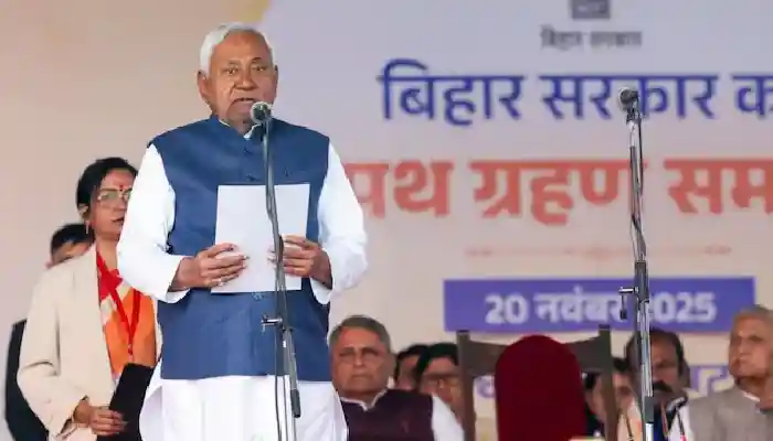 पटना. नीतीश कुमार ने 10वीं बार बिहार में मुख्यमंत्री पद की शपथ ली। गांधी मैदान में गुरुवार को हुए भव्य समारोह में PM नरेंद्र मोदी, केंद्रीय गृह मंत्री अमित शाह, बीजेपी अध्यक्ष जेपी नड्डा समेत कई बड़े भाजपा नेता मौजूद रहे। डिप्टी सीएम के रूप में सम्राट चौधरी और विजय कुमार सिन्हा ने शपथ ली। वहीं 26 मंत्रियों ने भी शपथ ली। जिनमें 14 बीजेपी कोटे से, 8 जदयू से, 2 लोजपा (R) से जबकि हम और कुशवाहा की पार्टी से 1-1 को मंत्री बनाया गया है। इस मंत्रिमंडल में एक मुस्लिम चेहरा भी शामिल है। जदयू ने जमा खान को फिर मंत्री बनाया है। शपथ के बाद पीएम मोदी ने मंच से गमछा हिलाकर लोगों का अभिवादन किया। हरियाणा, असम, गुजरात, मेघालय, यूपी, नगालैंड, ओडिशा, दिल्ली, एमपी और राजस्थान के मुख्यमंत्री भी शपथ समारोह में शामिल हुए। मंच पर चिराग पासवान ने मांझी और जेपी नड्डा के पैर छूकर आशीर्वाद लिया।