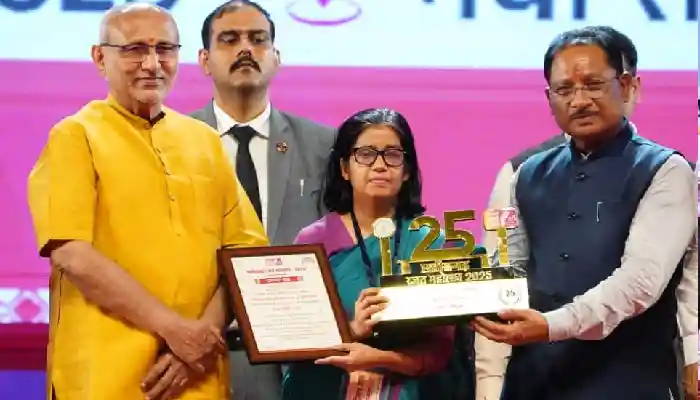 राज्योत्सव के समापन समारोह में उप राष्ट्रपति सी.पी. राधाकृष्णन के हाथों सचिव श्रीमती शहला निगार ने ग्रहण किया पुरस्कार
