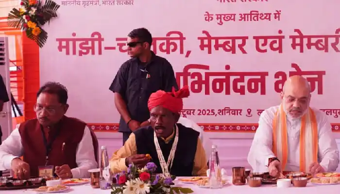 रायपुर, 4 अक्टूबर 2025. केन्द्रीय गृहमंत्री श्री अमित शाह एवं मुख्यमंत्री श्री विष्णु देव साय आज जगदलपुर के लालबाग मैदान में बस्तर दशहरा पर्व से जुड़े मांझी-चालकी, मेम्बर एवं मेम्बरीन के सम्मान में आयोजित अभिनंदन भोज में शामिल हुए। केंद्रीय गृह मंत्री श्री अमित शाह ने अभिनंदन भोज में परोसे गए आदिवासी समाज के पारम्परिक व्यंजनों की सराहना करते हुए कहा कि ये पारम्परिक व्यंजन बस्तर की संस्कृति, परंपरा और आदिवासी जीवन मूल्यों का अनूठा स्वाद प्रस्तुत करते हैं।